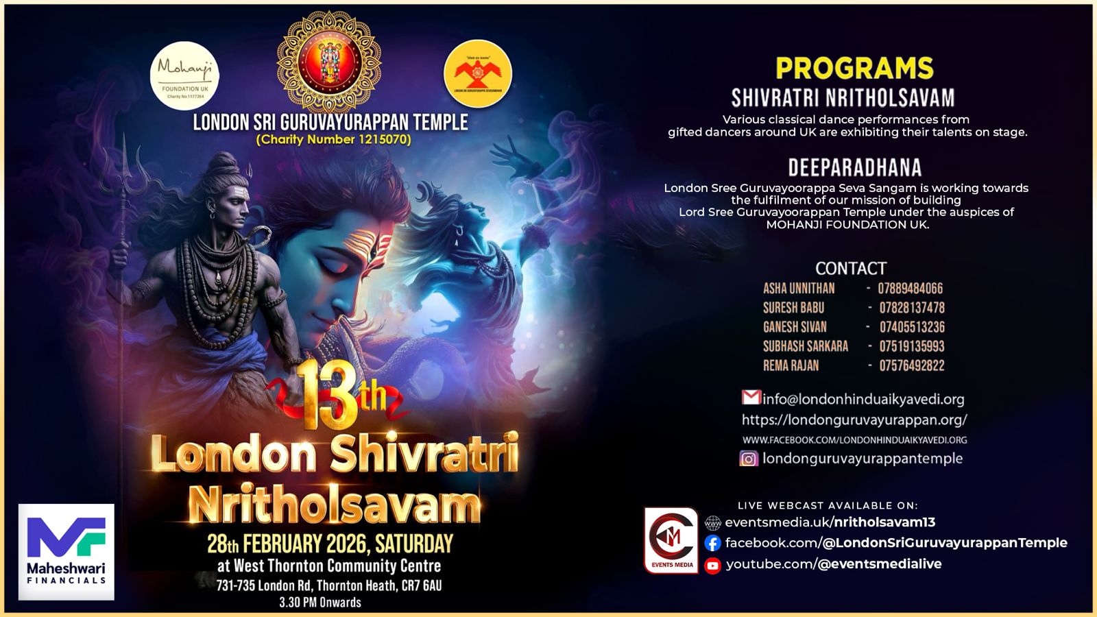 13th London Shivaratri Nritholsavam | London Sri Guruvayurappan Temple | 28.02.2026