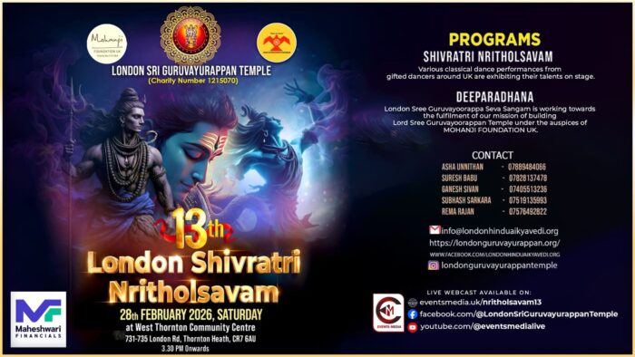 04 March, 202613th London Shivaratri Nritholsavam | London Sri Guruvayurappan Temple | 28.02.2026